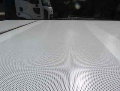 Panel constituido por dos láminas de acero adheridas mediante adhesivo orgánico a un núcleo aislante de lana de roca de alta densidad. La cara inferior dispone de perforaciones de 3 mm de diámetro. Entre la cara perforada y el núcleo se coloca un velo de fibra de vidrio
